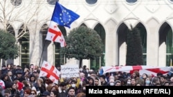 У здания парламента Грузии вновь собираются противники законопроекта «О прозрачности иностранного влияния», утвержденного накануне в первом чтении.